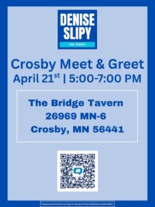 Join us Monday, April 21st at The Bridge Tavern in supporting our next State Senator, Denise Slipy!